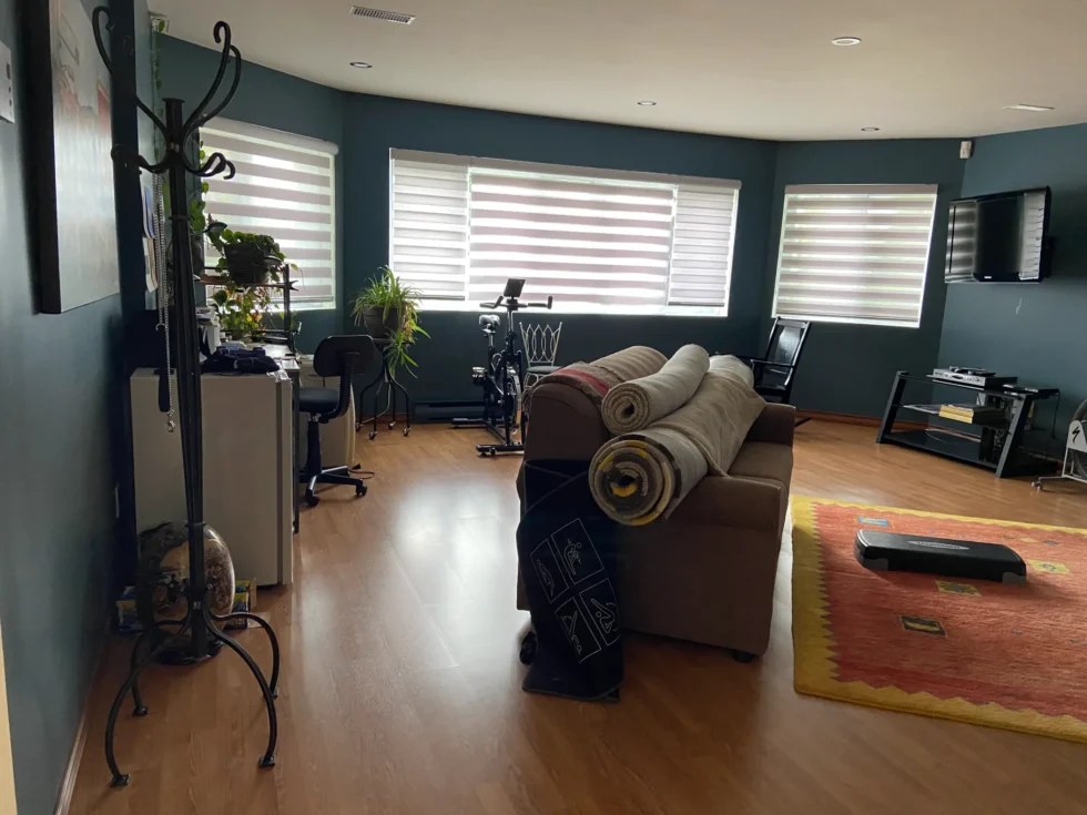 Cette pièce, autrefois peu utilisée et servant principalement de débarras, manquait d’une véritable vocation. Les propriétaires souhaitaient lui redonner vie en créant une véritable pièce télé, tout en conservant une certaine polyvalence pour d’autres activités.